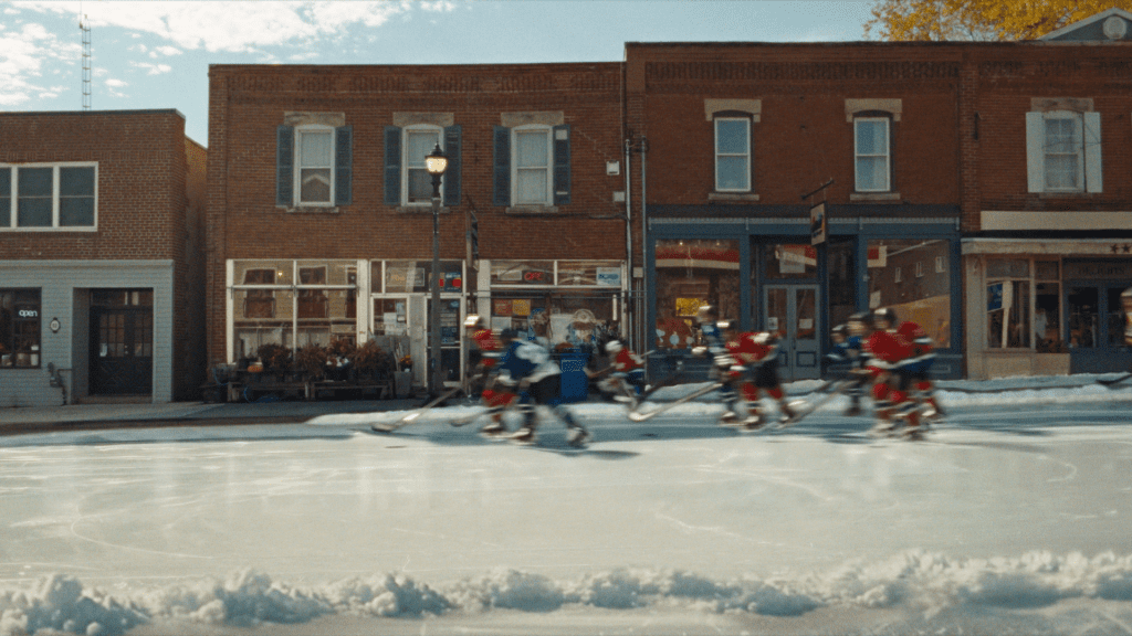 This was a real David vs Goliath story. We teamed up with Holiday Film Group and their super-talented director, Luis Gerard, to work on this epic TVC for Rethink Canada and Kraft. Like the ice in the film, the job expanded pretty dramatically. We found ourselves doing a :60 second ad, virtually all shots involved replacing roller blades with ice skates and it needed to be done in a little more than a month. Thankfully, we pulled a global team together, and used a mix of CG, Compositing, and AI tools that hadn’t even been released when the project started. AI pre viz, style frames, player shadows, reflections, snow banks and in several scenes, AI skate replacements, made this a truly hybrid project.